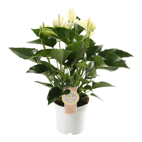 Breng een exotische sfeer in huis met de Anthurium ‘White Champion’ met zijn opvallend witte bloemen. De Anthurium is een trendy schoonheid. Een sieraad in uw huis.